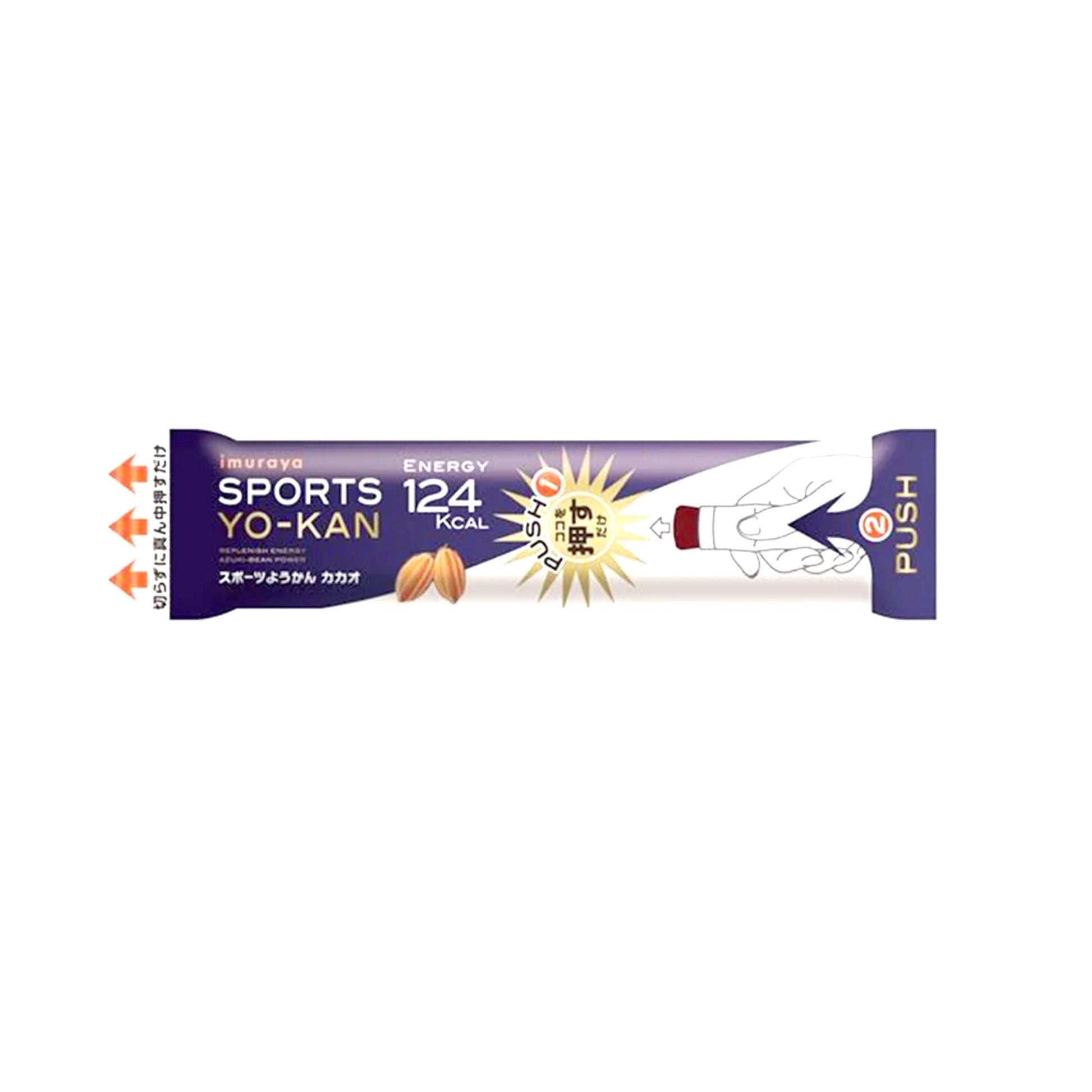 ・ハサミで封を切らずに、商品中央部をギュッと押すだけで中身のようかんが出てくるので、速やかなエネルギー補給が必要なマラソンやトライアスロンなどのタイムレースで活躍します。