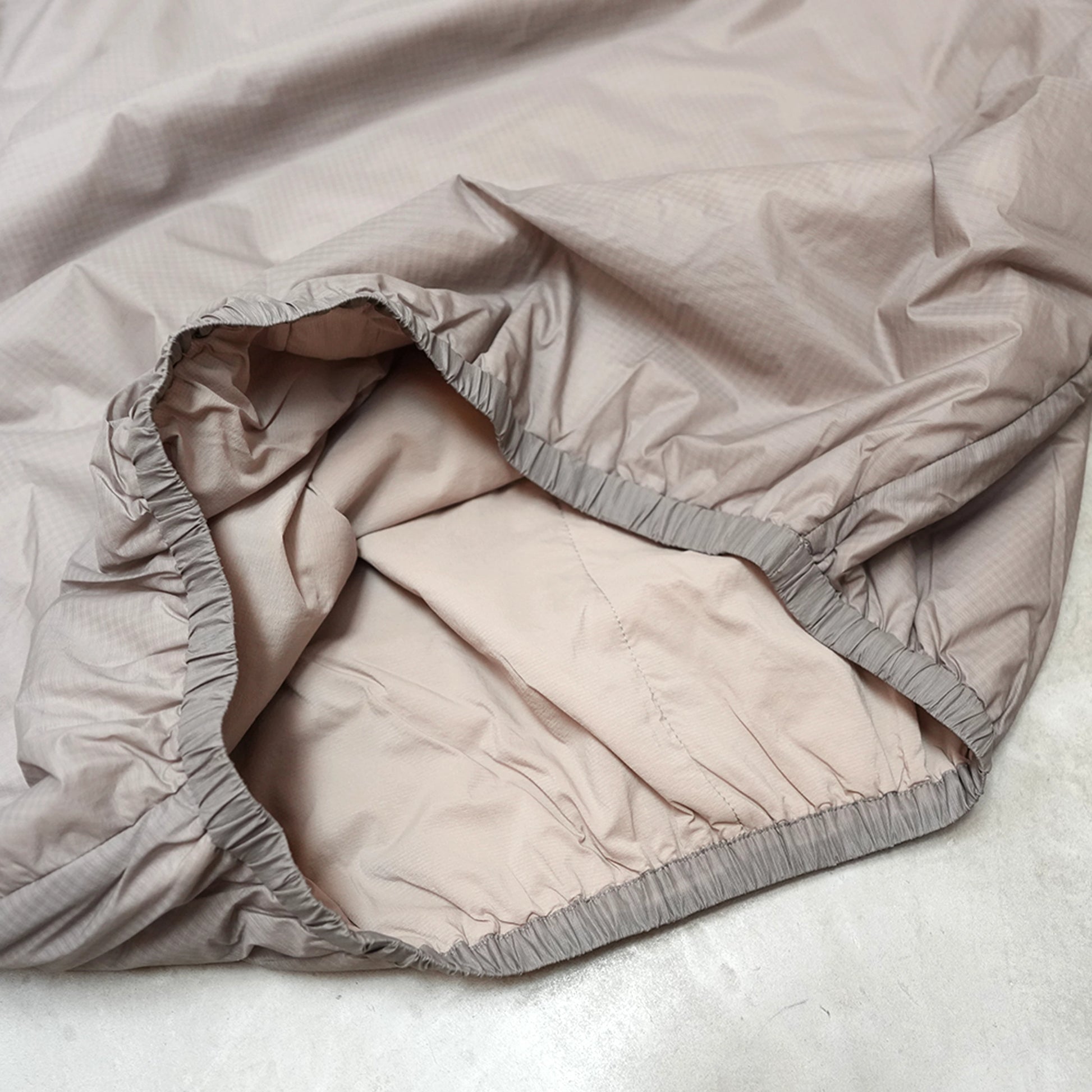 表地に採用しているPERTEX QUATUMは15dn×15dnのリップストップナイロンで、防風性、撥水性、速乾性に優れ、生地の裏面には中綿が吹き出さない加工を施しています。軽くてソフトな風合いでありながらアウターとして使用できる強度を兼ね備えています。