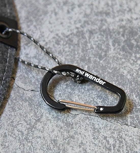 ザックなどに引っ掛けられるようにカラビナとロープをつけています。