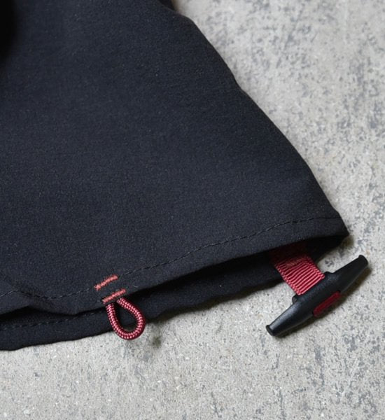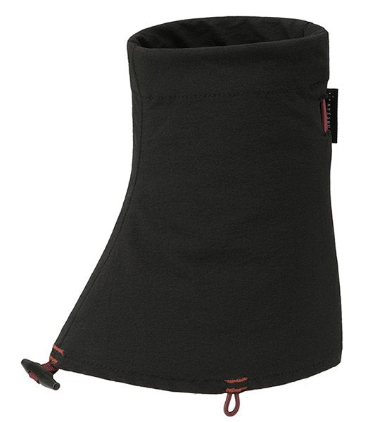 シノギングにおいてシューズ内への小石や枯葉などの侵入を防ぐためのミニマルなゲイターです。透湿性に優れているのでレインゲイターの様な不快な蒸れがなく、ショートレングスなためわずか37gと軽量でストレッチ性も備えています。地下足袋をヒントにした細身のフィッティングは長時間のシノギングにおける足さばきのストレスを軽減し悪場における安全確保にも有効です。シューズに固定するパーツにトグルを使用しているのでフックよりも簡単に確実に固定できます。また、踵裏に面ファスナー(ループ)を縫い付けているので一部シューズへの固定が容易にできます。