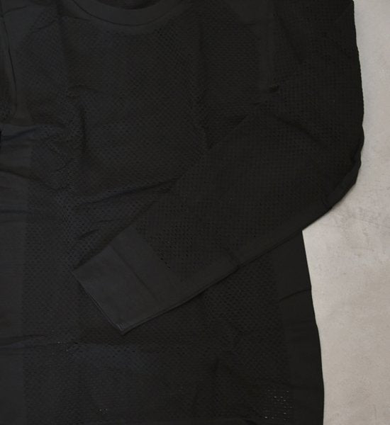水分を含まない特性を持つポリプロピレンを100%使用したベースレイヤー。身頃と袖はハニカムメッシュ構造で高い通気性と肌離れのよさを確保。汗を素早く放出する一方で、濡れ戻りを防ぎます。肩は摩擦に強い天竺編みで補強。両脇身頃はシームレスの丸胴成形により、縫い目による肌当たりも気になりません。ストレッチ性の高い生地は、身体にフィットしながらも複雑な動きに追従。繊維に付着したバクテリアの繁殖を抑えて、汗によるにおいの発生を軽減するポリジン加工を施しています。洗濯や収納に便利なネットケース入り。