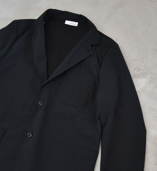 ALPHADRYを使った2ボタンジャケット。ALPHADRYは、吸汗拡散性の高い微多孔質活性粒子のココナパウダーを練り込んだポリエステル繊維です。衣服内をドライで快適に保ちます。カジュアルな雰囲気の3パッチポケットとnanamicaロゴ入りボタンがポイント。腰ポケットはサイドからも手が入るダブル仕様になります。内側には白いドットボタンがアクセントのポケットとモバイルフォンサイズの切替ポケット付き。裏地にはコットンクールマックスダンガリーを使用し、爽やかな印象に仕上げました。