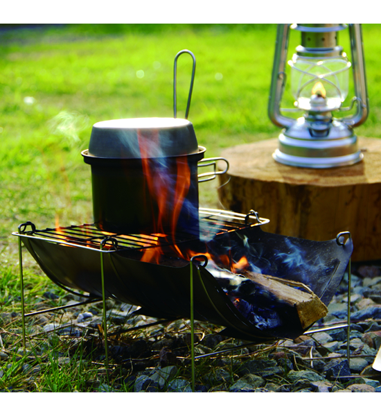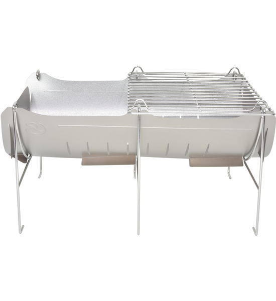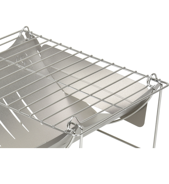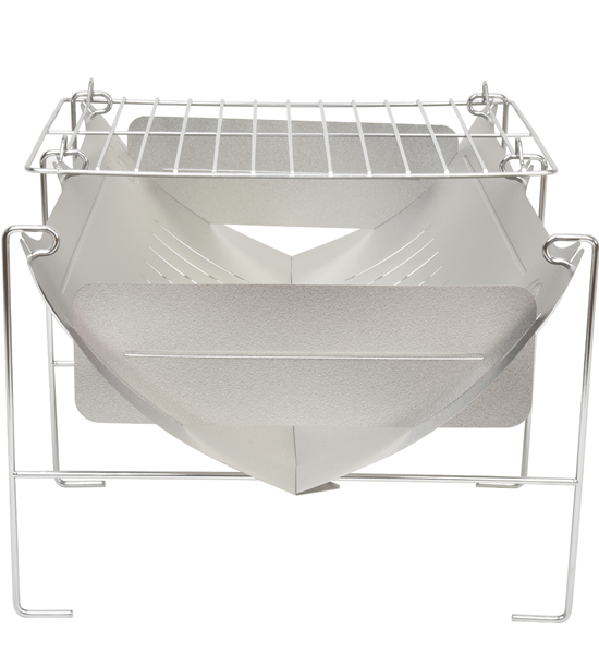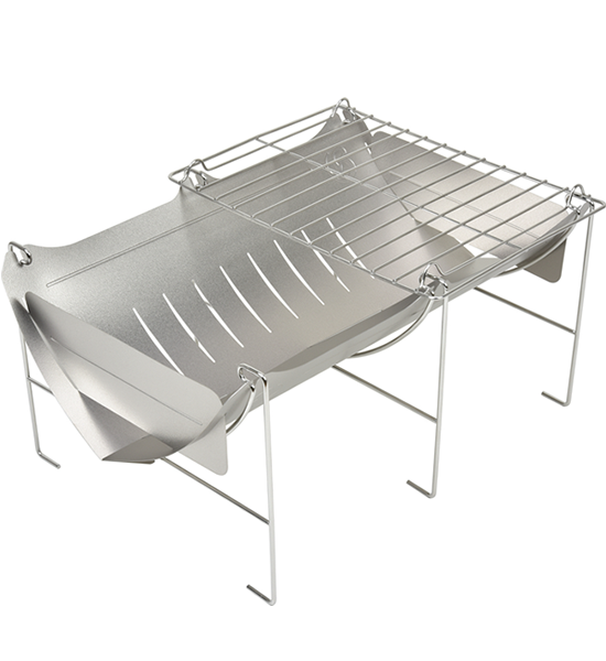 燃焼効率も良く、焼き網付きで、料理もしやすいチタンの焚き火台