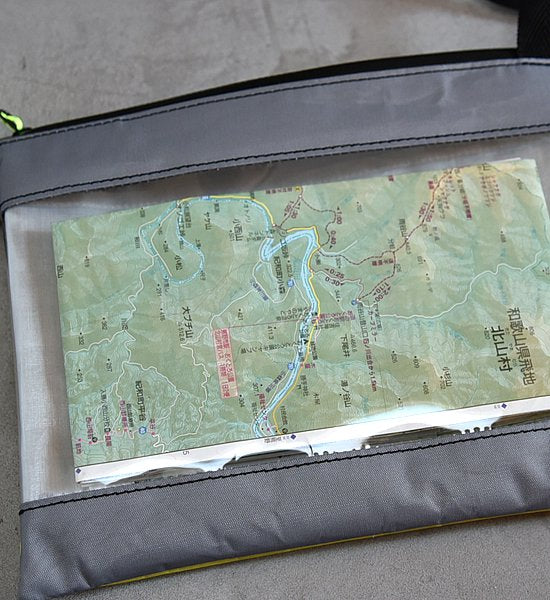 背面には透明PVCを使用することで中が見やすく、地図をいれれば持ったまま出さずに位置確認が可能です。
