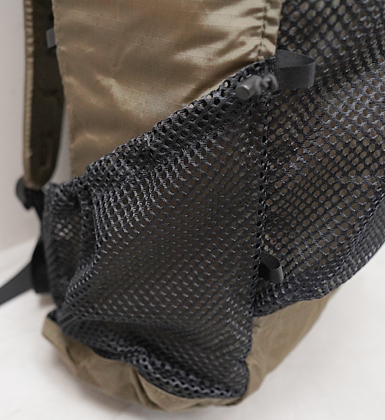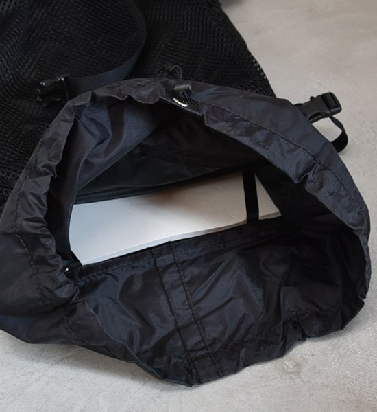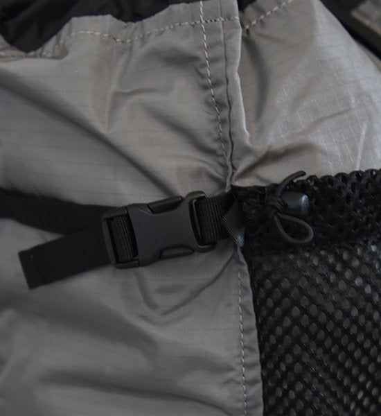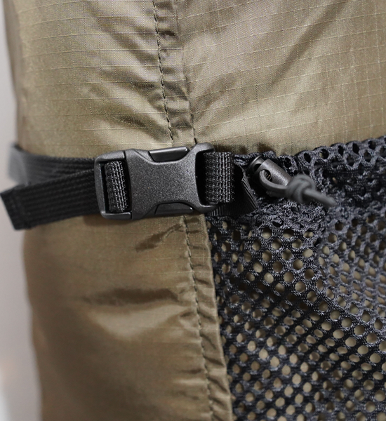 - たっぷり入るフロントポケットは伸縮は弱いが紫外線劣化が少ないソフトメッシュ。