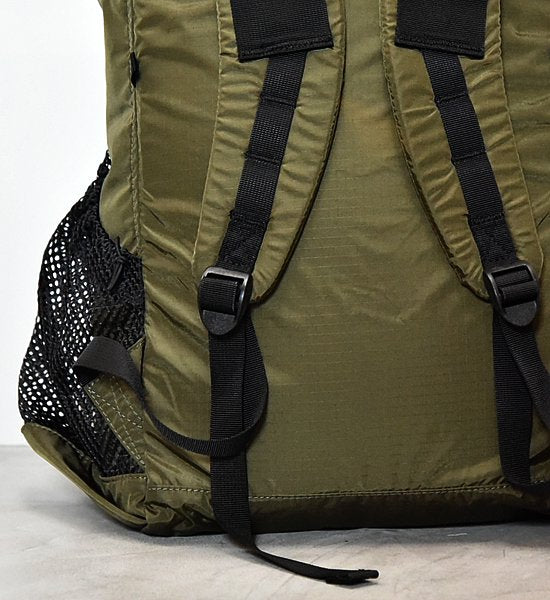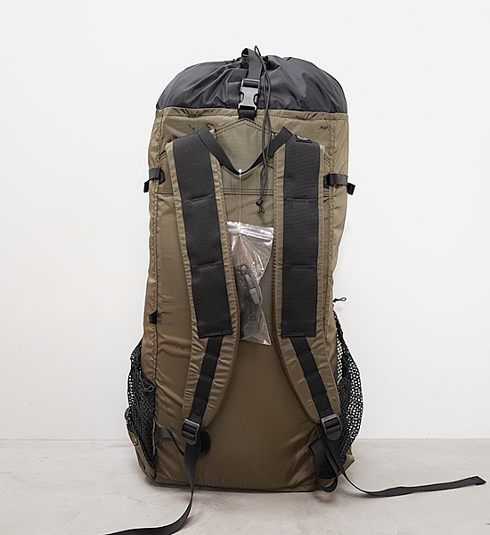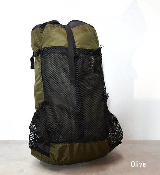 トレイルバムたちの普段使い。トレイルライフからタウンライフまで幅広く使えるウルトラライトハイキングバックパック。ハイカー“Yas”の自作バックパックなどをベースとして、TRAIL BUMの思いをぎゅっと詰め込んだ、トレイルバムらしいシンプルな構造。ウルトラライトバックパックのトラディショナルデザイン。