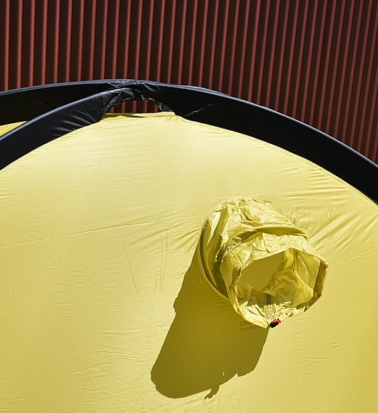 クロスオーバードーム<2G>シリーズは10dnの高強度極薄・日本製素材をパネルとスリーブに新採用。パネル素材は特殊な防水透湿PUコーティングを国内加工し、耐水圧は第1世代の約1.5倍、透湿性は約1.9倍と大幅に性能アップしています。さらにパネル自体に通気性能を持たせることでより結露を軽減しています。この高強度極薄素材は、織糸に特殊な強力糸を使用することで、引裂強度を上げながらも、さらなる軽量化を可能にしています。 さらに後面ベンチレーターの位置と仕様を見直すことで換気性能が向上。また、パネルに通気性があるため、空気が抜けやすくスタッフバッグへの収納もスピーディーに。