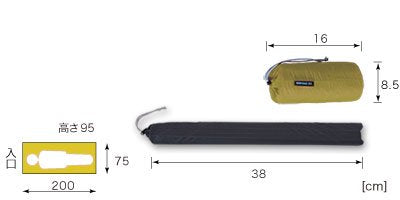 | 間口75㎝×奥行200×高さ95㎝ (収納時:16×高さ8.5㎝) |