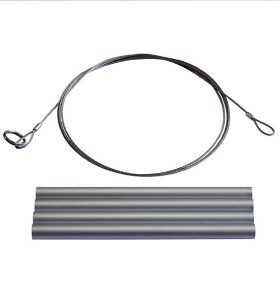 折り畳み焚き火台ワイヤフレームの交換用ワイヤキットです。吊り下げワイヤと焚き火クロスに入れるフレームパイプのセットです。破損した場合にお求めください。