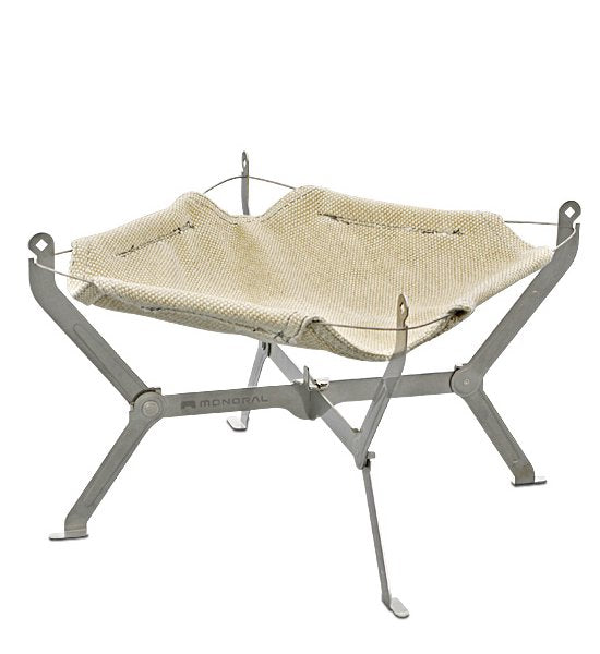 特殊耐熱クロスを用いた折り畳み焚き火台。 デイパックに入る収納サイズと焚き火を愉しめる火床形状を実現。