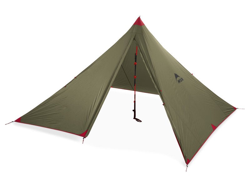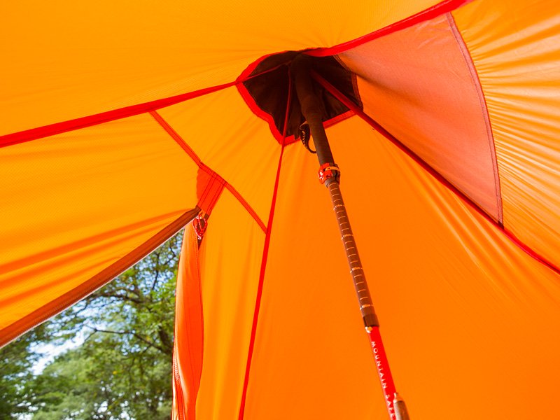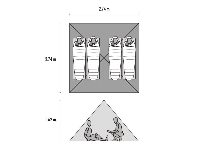 モノポールのピラミッド型シェルターが登場しました。幕体だけならわずか740g。持っていることを忘れてしまうほど軽量でコンパクトです。春のスキーツアーや残雪期の登山を楽しみたい人に最適。パーティの食堂やリビングスペースとして使うことも可能です。ポールは付属せず、スキーポールやトレッキングポールを使用して設営します(2 本のポールを束ねるストラップが付属)。生地には新しいコーティング技術、エクストリームシールドシステムを採用。この新しいコーティングは、従来の標準的なコーティングと比較して約3 倍長持ちします。さらに、正確で耐水性が高い縫製によってシームテープをなくし、経年劣化によってシームテープが剥離するトラブルを解消すると同時に軽量化にも貢献しています。
