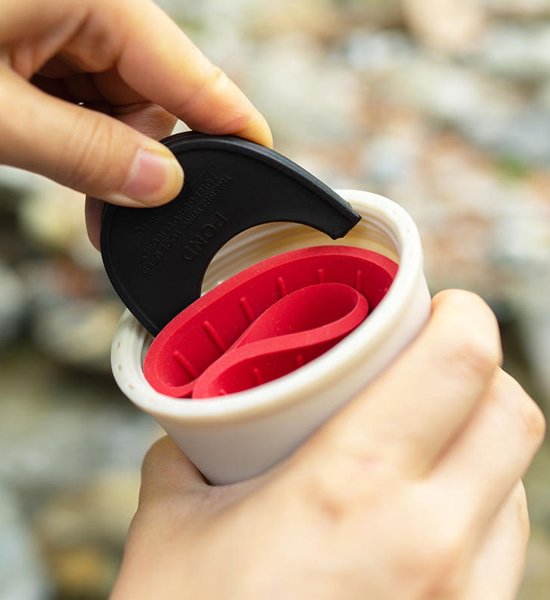 アウトドアギアで“コンパクト”は永遠のテーマ。 ポンドFはわずか14gと軽量で折り畳めるコンパクトサイズ。FはFOLD(折り畳む)の意味で、ケイブリバーシブルと共に折り畳んでタンブラーに収納すれば、究極にコンパクトなアウトドアコーヒーセットの出来上がり。 また、本体にはV時のペーパーフィルターガイドラインが付属。このV字ラインに合わせてペーパーを折り畳めば、簡単に折り目が分かります。