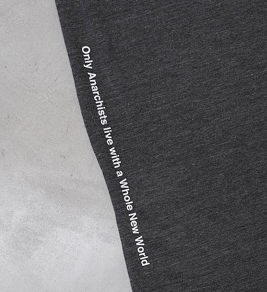 速乾天竺の幅広ワイドシルエットTEEは、Aマークのクライミングヘルメット。左脇には縦レイアウトによるOnly Anarchistプリント。