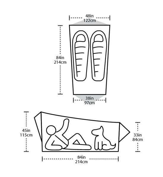 パックサイズ13.5 "x 5" / 34 x 13cm 床面積25ft²/2.3m² 頭の高さ45 "/ 114cm |
