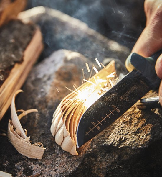 アウトドアナイフは切れ味が長持ちし頑丈でなければならない。これがこのOK4に日本の炭素鋼を採用した理由です。ハンドルは116mmと長めでサントプレーンフリクショングリップを採用し最高のグリップと取り回しの良さを提供します。ホルスターには80mm幅のベルトまで装着可能な織物のベルトループと別売りのファイアスターター用ポケットも装備されています。ブレードは3mm厚で日本の炭素鋼をHRC58-60まで硬化し、腐食に耐える錆防止電気泳動コーティングが施されています。ブレードにはスカンジ研削が施され鋭い切れ味と耐久性があり研ぎ直す場合も容易にできます。ブレードの背はファイアスターターで火を起こしやすく設計されています。