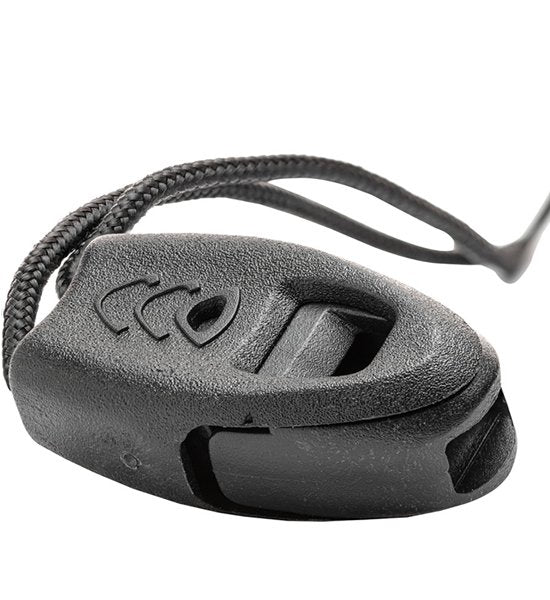 収納ケースのドローコードは、緊急時に火をおこすためのティンダーコードとして使用することができ、ホイッスルも付属しています。