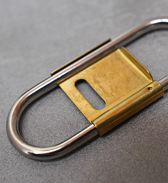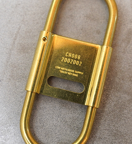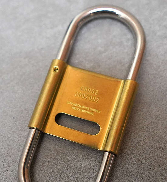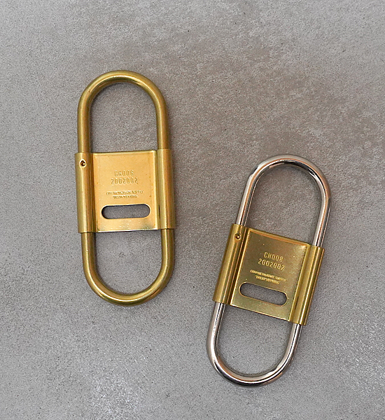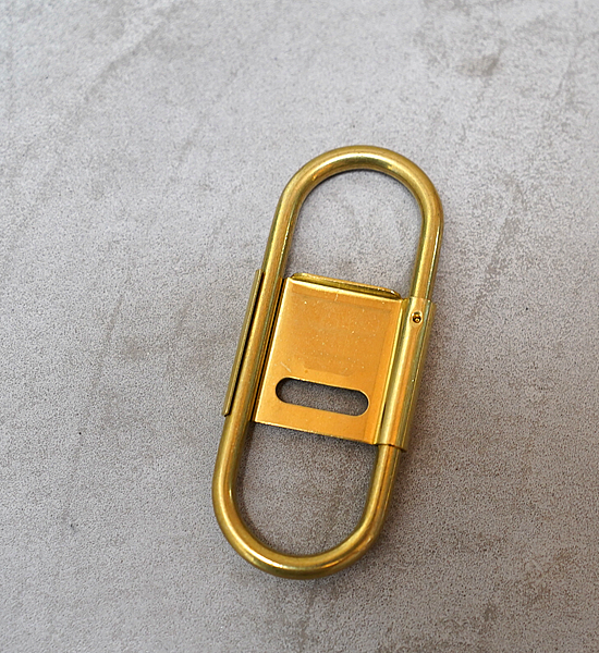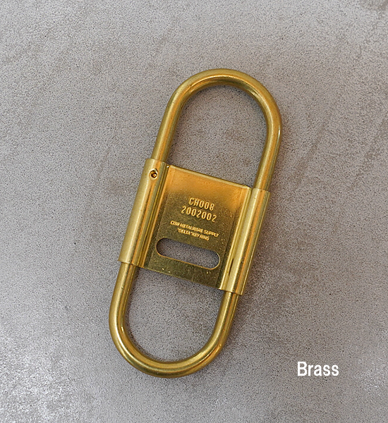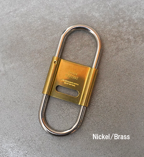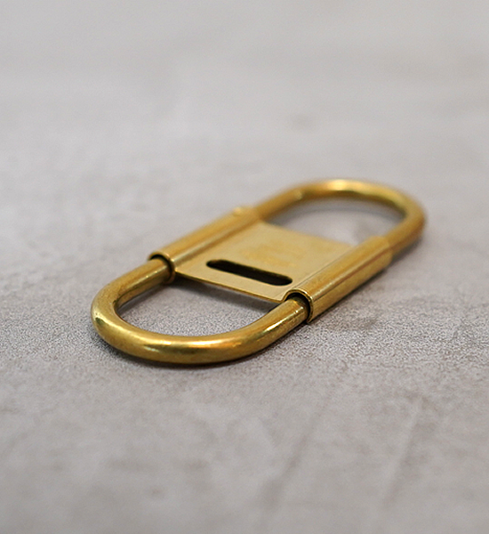 カラビナタイプのキーリングをCANDYなりにデザインするとこういう感じになりました。スプリング式で脱着しやすく、開閉式のセンターパーツがストッパーになっているのでベルトループに付けた際にキーリングと鍵の回転を防ぎます。