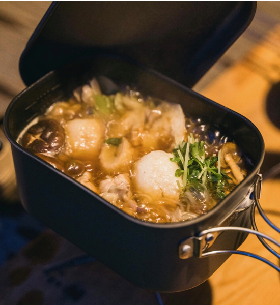 煮る、炊く、茹でる。あらゆる調理が可能な深なべ。丸みのある長方形は、ソロキャンプでの万能性を追求した究極のフォルムです。