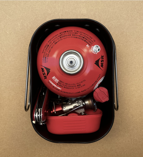 移動時の収納性にも徹底的にこだわり、あらゆる調理道具を想定して寸法を決めました。110サイズのガスカートリッジはもちろん、フライパンを蓋にすれば250缶サイズも収納可能。まさにギアコンテナです。