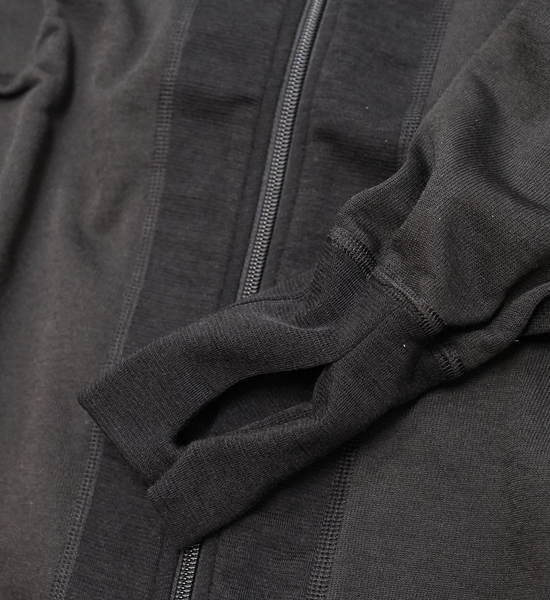 過酷な環境での耐久性を高めたメリノウールとポリエステル/ポリアミド混合素材のジャケットです。20.5 マイクロン混紡繊維を使用し、230g/m2 ウェイトのテリーニット構造をしています。ループ構造のインナーはより大量の空気滞留保温層を作り出すことができます。ウール繊維の特徴を生かしつつ、混紡によって太く強い繊維を作り出すことで耐久性も高めることに成功しました。その堅牢さから各国の軍隊のアンダーウェアにこぞって採用されています。