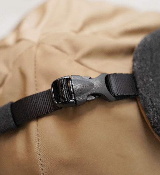 クラウンに4箇所ベンチレーション機能を搭載し、走行中に前からくる風を取り込み蒸れを大幅に軽減できます。耳当ての直接肌に触れる内側部分には高い保温性と静電性を両立した素材を使用し、ベルトが邪魔にならないようにバックルを左右それぞれ追加しました。この耳当ては着脱を可能にしており、付け位置も耳に合わせて調整できます。