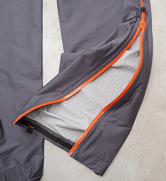 ひざまである長めのジッパーで、パンツの脱着も素早く行えます。ジッパー下部にはレースフックが付属し、シダや低木などの茂みの中を走る際でも靴の周りにぴったりとフィットし、小石などの侵入を防ぎます。