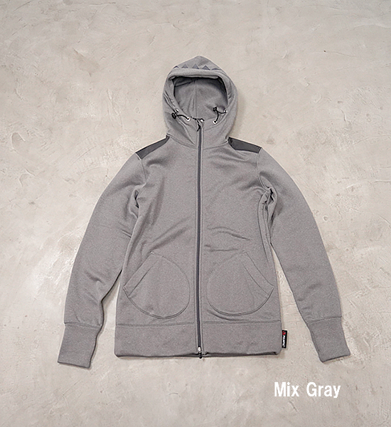 リアルなアウトドアシーンでの激しいアクティビティに求められる高度なストレッチ性と吸水速乾性を有した「POLARTEC® Power Stretch」。 4方向に伸縮する強度なストレッチ繊維と特殊な二重ニット構造により、あらゆる動作を妨げることなく、快適に動ける高いストレッチを実現。また、高い通気性と、発汗による水分を吸収しながら外側へ拡散させて素早く蒸発させる吸水速乾性を備えます。 しなやかな素材は形状回復性に優れ、フィット性を高めることで快適に動けるメリットを生みます。スムーズな生地表面は他のプロダクトとの摩擦抵抗が少なく、レイヤリングがしやすいためアウトドアアクティビティとの相性がいいです。日本製のオリジナルボディはアクティビティに適したタイト過ぎずリラックス過ぎないシルエット。フロントは軽量のコイルファスナーで上からも下からも全開になり、体温調節が可能。フード形状にこだわり、襟元を高くすることで防寒性を高めています。 フードは紐ではなくドローコードで調整。脇下にはファスナーで開閉できるベンチレーションを装備。衣服内に溜まった熱を素早く外側に放出します。肩、ポケット、エルボーパッチ部分は撥水加工をしたストレッチ性のあるスエード調機能素材で補強すると共にディティールアップ。袖はサムホール仕様。信頼の高いPOLARTEC® Power Stretchの保温性は体温をしっかりキープ。内側のフリースは柔らかく心地よい肌触りで、寒い時期のミッドレイヤーから秋のアウターとしても使用することができます。 ベーシックなデザインとハイスペックな機能。アウターやミッドレイヤーとして、アクティビティとデイリーの垣根を超えて、ラン、ハイク、サイクリング、トリップなど幅広いシーンに対応するマルチパーパスウェアです。