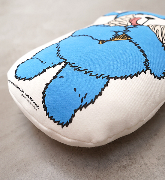 平沼久幸画伯が今シーズンのために描いてくれたクマちゃんをクッション化。今シーズンならではのアーティスティックな表現はTシャツのグラフィックに留めておくだけでは惜しいもの。よって、本作のような立体物としてもどうぞ。