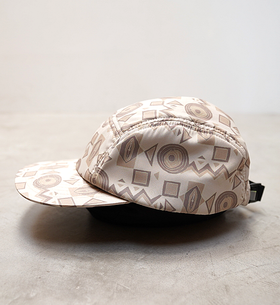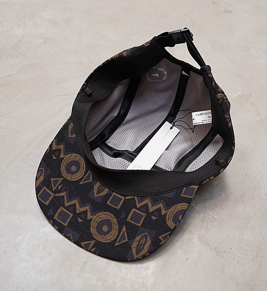 UV カットと吸水機能のあるジェットキャップ。汗留めテープに も吸水機能を付けました。頭に沿うように、スッキリとシャープ なシルエットに仕上げました。アジャスターの片側には平ゴムを 使用し、フィット性を高め実用面を考えています。