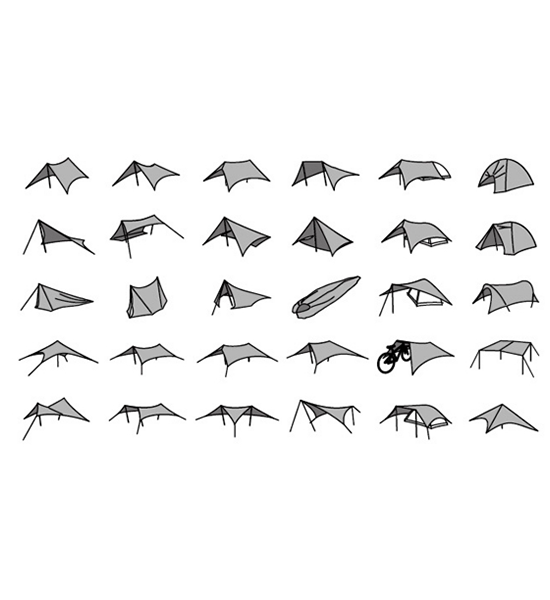 ・設営の容易さを追求した独自のタープ形状が特徴です。中央に張り綱が不要なため素早く設営できるのが特徴です。ポールの移動が簡単なのでバリエーション張りもストレスなく行えます。