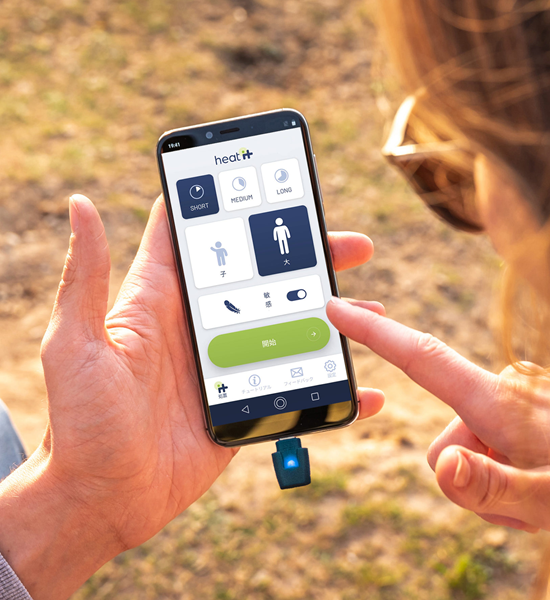 ヒートイットはスマートフォンの充電ポートに挿し込んで使用する虫さされ対策機器です。虫に刺されるとアレルギー反応でヒスタミンが分泌され、血流が増えることで痒くなります。 ヒートイット は痒みの原因のヒスタミンの作用を加熱により分解するための虫さされ対策機器です。患部を約51℃で短時間温めます。この化学物質を含まない局所的にあたためるハイパーサミア(温熱療法)効果は、医学的にも確認されています。 コンパクトなのでいつでもキーホルダーで持ち歩けます。ヒートイット にはiPhone用とAndroid用の2タイプあります。操作するにはあらかじめスマートフォンアプリをインストールしておく必要があります。