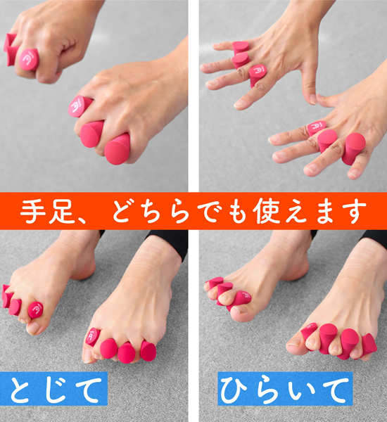 その効果の秘密は、素材の発泡ゴムと、太さと硬さにあり一定の圧力を指間に優しく