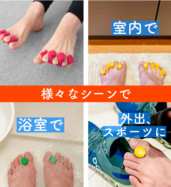 浴室、室内外どこでも使え、転倒予防、腰痛や外反母趾(ぼし)、むくみ、浮き足、冷え性などの方にもおすすめです。