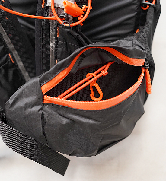 ベスト型ハーネスは、移動中に必要なものを簡単に取り出すことができ、出し入れの頻度が少ないものはメインパック本体に収納することができます。