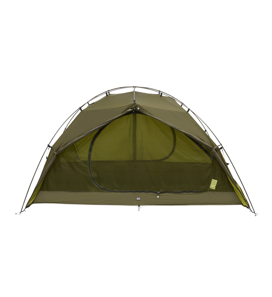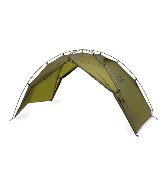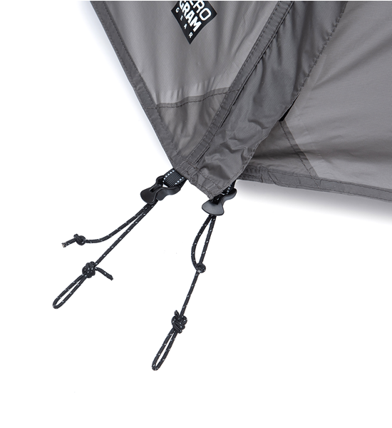 ZEROGRAMのシグニチャテントでもあるEl Chalten(エルチャルテン)は、フライとインナー、フットプリントを連結して一度に設営できる一体型構造を、初めて実現した軽量ダブルウオールテント。テントの設営撤収が非常に簡単で、稜線使いや悪天候下でも安心してご利用いただけます。長辺の前後2か所にある大きな入口と前室は、実際のフロアサイズ以上に解放感と機動力のある居住空間を実現します。インナーテント壁面全面とベンチレーションの素材には、通気性を保ちながら結露がほとんど発生しないモノフィラメントが使用されています。