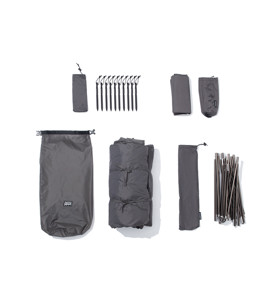 構成:フライ、インナーテント、ポールセット、ペグ×10、ガイライン×4、フットプリント
