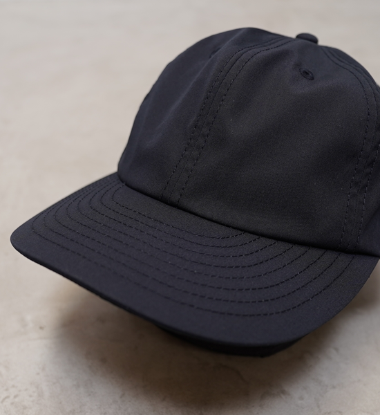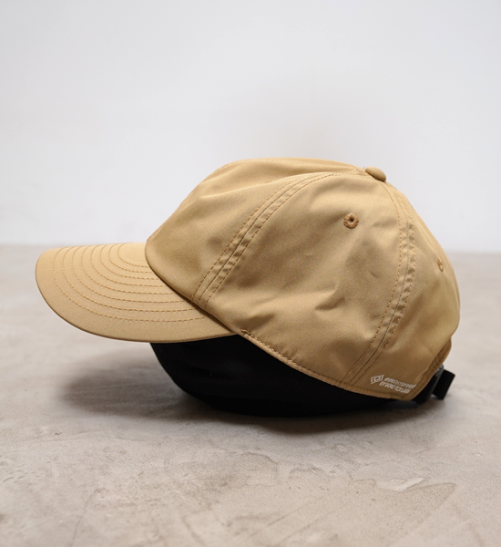 ブランドの定番素材、65/35ベイヘッドクロスを使用したベースボールキャップ。糸はオーガニックコットンとリサイクルポリエステルを採用。はっ水加工を施すことで機能性をプラス。裏側に風の侵入と内側の蒸れを軽減するWINDSTOPPER® LINERを採用しています。