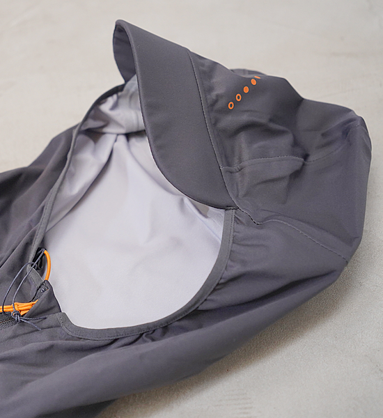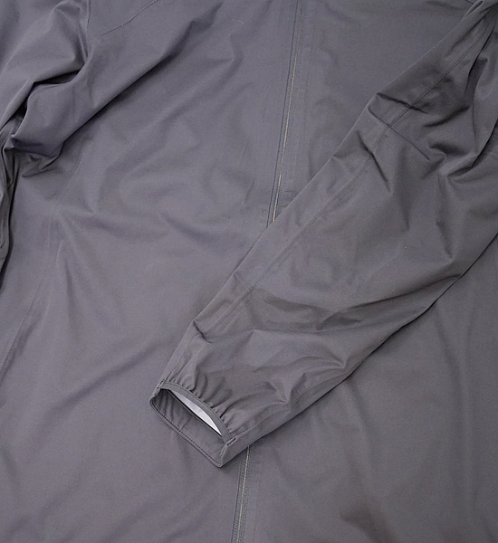 ラミネート加工を施したキャップスタイルのピークを備えた、ぴったりとフィットするロールアウェイ式フードは、視界を妨げることなく天候を保護するようデザインされている。フィット感を確保するクラウンアジャスターと、傾斜が強くなったときに空気の流れを確保するリアベント付き。上腕部の背面には体温調節に役立つベンチレーションホールを備え、防水ストームフラップ付きの軽量フルレングスジッパーは首元までジッパーで開閉でき、悪天候をシャットアウトします。