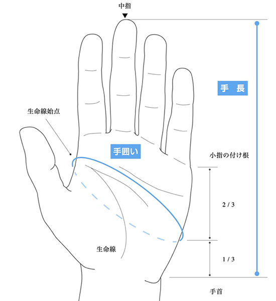 XS/S:手囲い 21-22cm/手長 18cm |