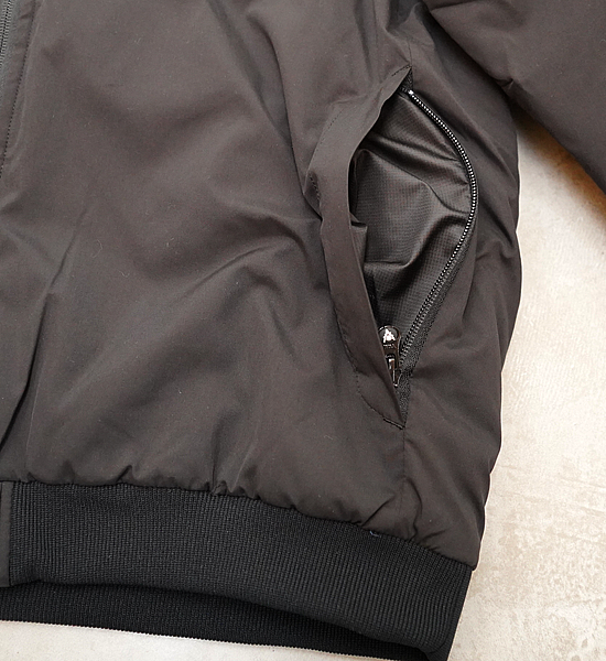 F23シーズンから新たに登場した新型アウター。ボリュームのあるたっぷりの中綿を使用した、リブカラーのスポーティなデザインです。シェルにはソフトな肌触りのピーチスキン素材を使用しており、アイテムの雰囲気に非常にマッチしています。着心地は非常に軽く、長時間の着用でもストレスを感じさせません。