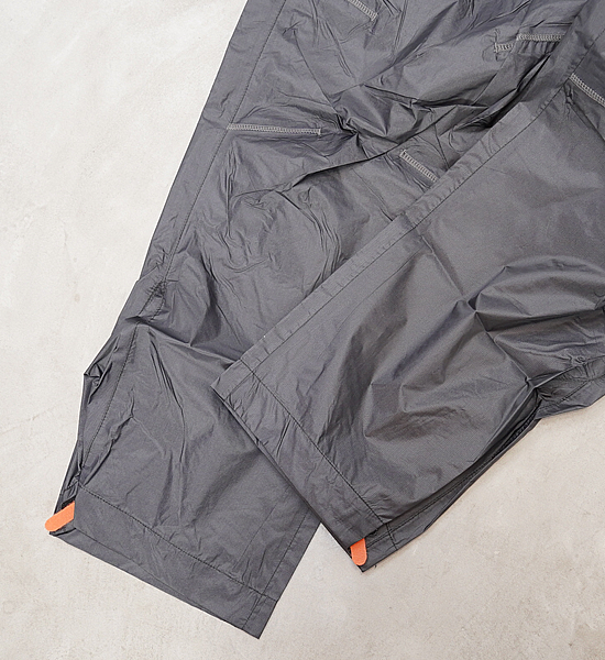 95G ウルトラライトウェイト ウォータープルーフ レインパンツ。超軽量かつ透湿性に優れた防水レインパンツです。高機能ながらテニスボールサイズにまでコンパクトに収納できます。身軽さとスピードを追求される方に最適です。防水透湿素材を採用した2レイヤー構造で、縫製は最小限にとどめ、防水シーム加工済み。Halo Smockと上下セットで使用してもわずか190gという超軽量を実現しました。OMMイベントの必携装備基準を満たす最軽量かつ最小のレインパンツです。いざ天候が悪化したときにはその本領を発揮します。AW23よりウェストゴムを幅広にアップデートし、より快適に長時間着用できます。また背面パネルも高めに改良し、パックの下のジャケットがずりあがっても背中が露出しないよう、そのカバー域を拡げました。