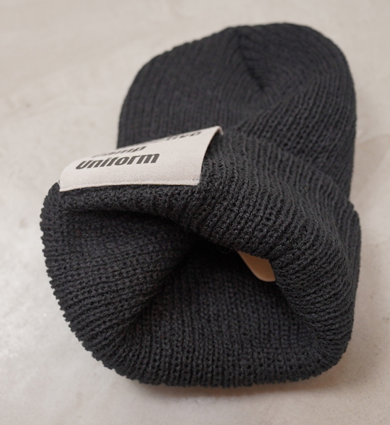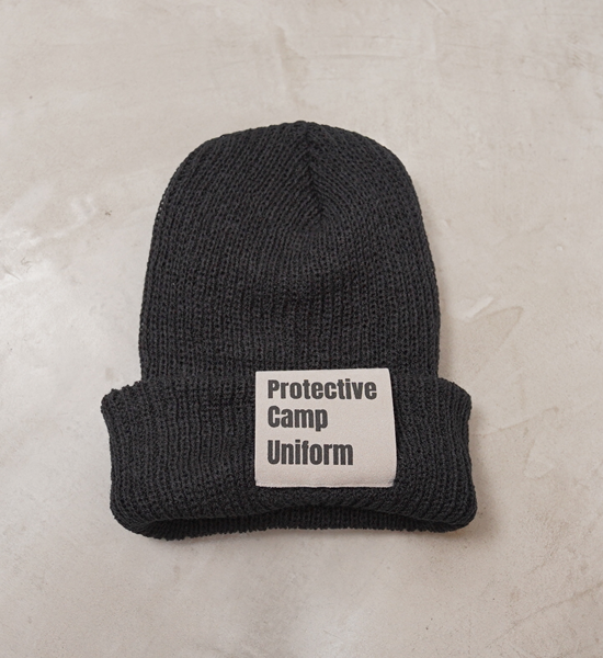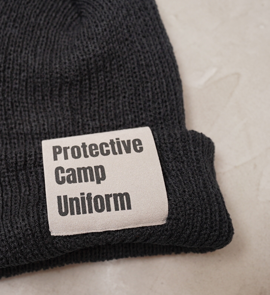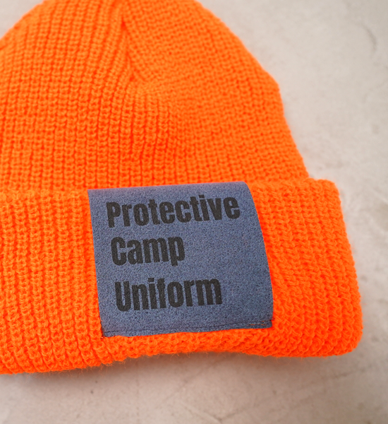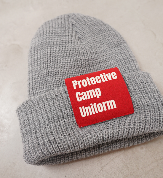 フェイクレザーの巨大タグ(ことメガタグ)を裾に縫いつけたアクリルビーニーは、カラフルな配色がポイント。折り返してかぶればPCUロゴ、伸ばしてかぶれば”A”マークといったウェアリングの変化も楽しんで。