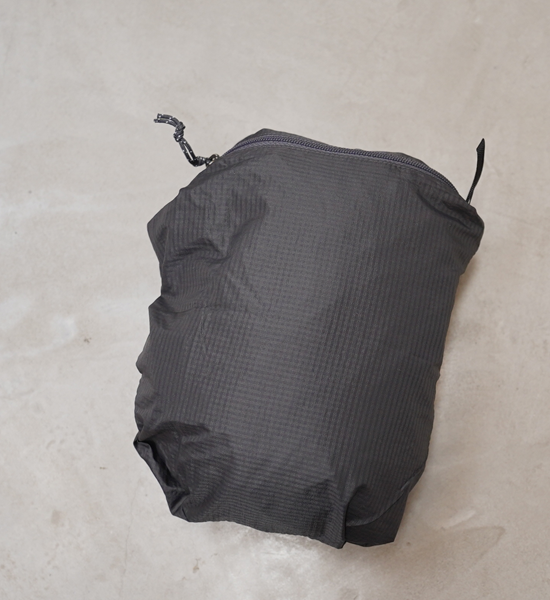 ・シェルには超軽量リサイクル・ナイロン100%素材のリップストップを使用し、軽度の水分を弾く有機フッ素化合物不使用のDWR(耐久性撥水)加工済み