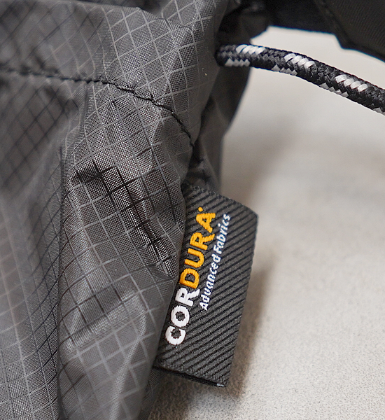 INVISTA社の30Dコーデュラナイロン素材を使用しており、摩耗、引き裂き、すり切れに強く、シリコンコーティングによる優れた撥水性と1000mm以上の耐水性能をもちます。行動中に必要な物を手元に下げておくためのサコッシュバッグです。