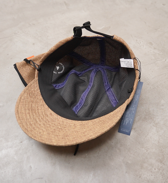 UVカット機能ある天然ライクなパッカブルキャップ。幅広のツバと深めのクラウンは、男女問わずに被れるおさまりの良いシルエットです。吸水速乾機能のあるスベリに、押し洗いが可能とアクティブシーンに重宝します。付属のミニサコシュのショルダーコードは着脱ができ、キャップのアゴ紐としても使用可能です。