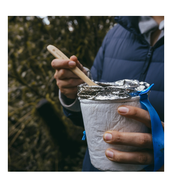 PEフォームを内蔵したタイベック製クッカー用ケース。一般的な750ml-1100mlのクッカーにフィット(高さ約115mm程度)。持ちやすいハンドル付き。