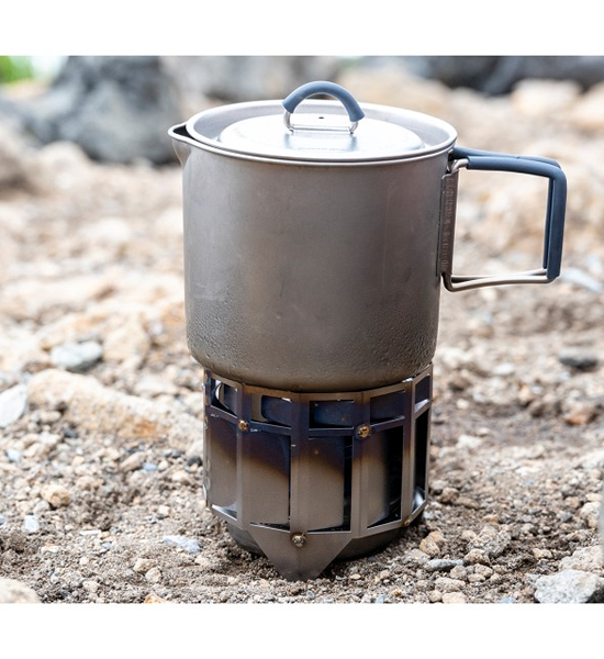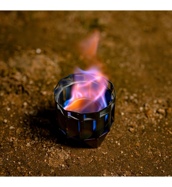 燃焼工学を用いて綿密な計算のもとに配置されたフィンが炎を旋回させ加熱効率を高めます。組み立て要らずの構造でアルコールを入れて火をつけクッカーを置くだけ。このギミックとシンプルさはアルコールストーブをより一層実践的な道具にすることでしょう。