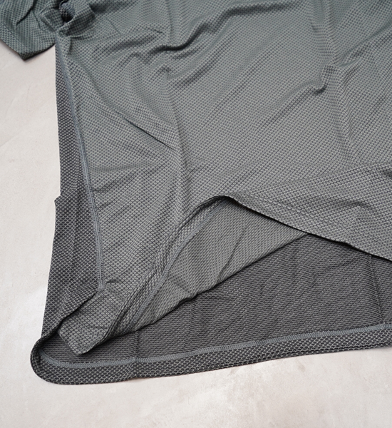 疎水性と親水性の両方の糸を組み合わせた特殊なニット構造を採用。肌の触れる面には疎水繊維が水分を肌面に残さず常にドライな状態を維持。外側の親水繊維が素早く汗を拡散して乾かすことができます。また、立体的なニット構造は通気効率を最大限に高め、暑い条件や強度の高いアクティビティでも快適に着用することが可能です。