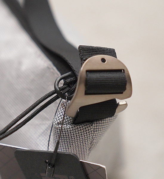 エコパックのウルトラウィーブを使用した軽くて丈夫なストレージバッグ。チタン製のGフックが付いたストラップでコンプレッション出来るのが特徴です。大きく開く開口部は入れやすさのため、入れた後はコンプレッションで小さくまとまります。クッカーを入れるも良しアイゼンを入れるも良し。素敵な見た目を存分に楽しんでください。