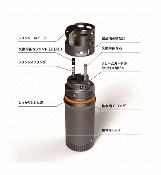 タイタンライトは、アルミを精密に削りだして作った非常に丈夫な防水ライターです。2つのOリングが燃料の気化や漏れを防ぎ、水深1mの防水機能が備わっています。 ※ライター用オイルは付属しておりません。 57g made in USA 全長:約8.6cm/直径:約2.5cm ※サイズ計測の多少の誤差はご了承下さいませ。